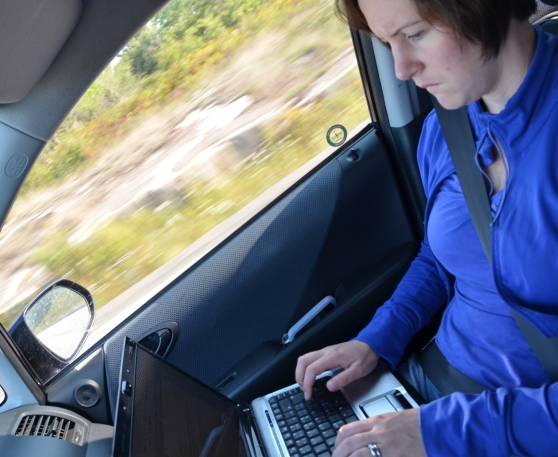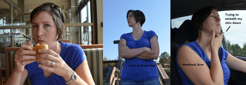 There is an aside here for anyone who is married to or is connected to a photographer.  I am in dire danger having my picture taken doing the most mundane of things with little warning.  I mean who wants to have their picture taken while stuffing their face full of carb delicious Wendy’s Spicy Chicken Sandwiches?  Or while driving?  From today alone, here are the indignities suffered: