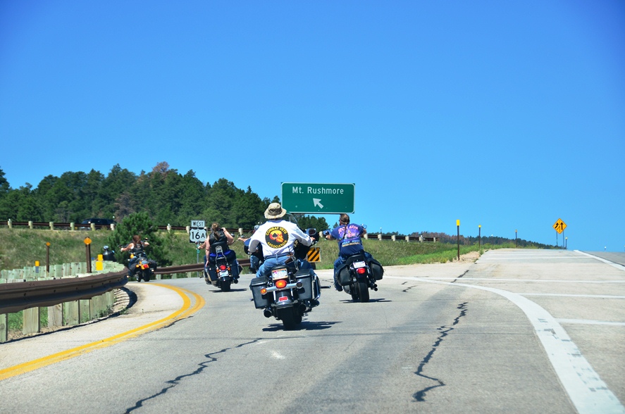 Anyways, imagine driving the short distance from the South Dakota I-90 to Mount Rushmore with 50% of the traffic being cruising bikes. We were in a group of about 15 bikes and us. It felt like being in a poor country’s presidential motorcade.