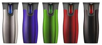 It turns out, that I like these travel mugs a lot. My friend was right. I did need them. <<insert “I told you so” here, Alison>>I use one most days and I really like how they lock closed so you can drop it or roll it around in your car without spilling. Very good seal system. When you want to drink, you press a button and hold a button that allows you to drink.