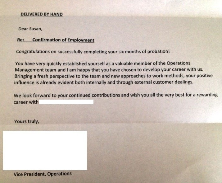 The nice thing about probation is it forces a conversation when you come off probation about how things are going, how you’re feeling, etc. And after a while, you start thinking “Hello? Do you like me or not? Am I here or not?” So it’s nice to get it sewn up.